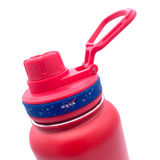 - ✔ LARGE CAPACITY, TRAVEL FRIENDLY - The big 32 ounce size of this refillable bottle will last you the whole day while keeping your drinks cold and fresh. Share with your friends, family, and kids. The sturdy lid and loop handle provides a comfortable carrying experience on all your travels. Perfect for trips to the gym, the beach, hiking and camping.