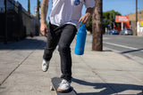 Blue, blue, electric blue! Stay hydrated all day long with our Electric Blue 32 oz and 40 oz insulated water bottle. Featuring a twist-open spout lid for easy drinking on the go, and a matching protective silicone bumper.